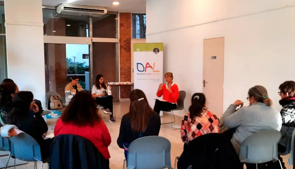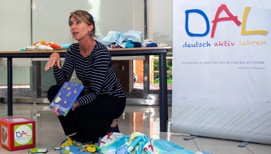 DAL – Deutsch Aktiv Lehren no es solo un método, es una experiencia transformadora. Con DAL, los docentes descubren un sistema de enseñanza que los guía, orienta y empodera, brindándoles herramientas claras y creativas para acompañar a cada niño en su proceso único. Al mismo tiempo, los niños vivencian el aprendizaje de una lengua extranjera poniendo el cuerpo en movimiento, activando sus cinco sentidos y sumergiéndose en una atmósfera emocionalmente favorable y segura.